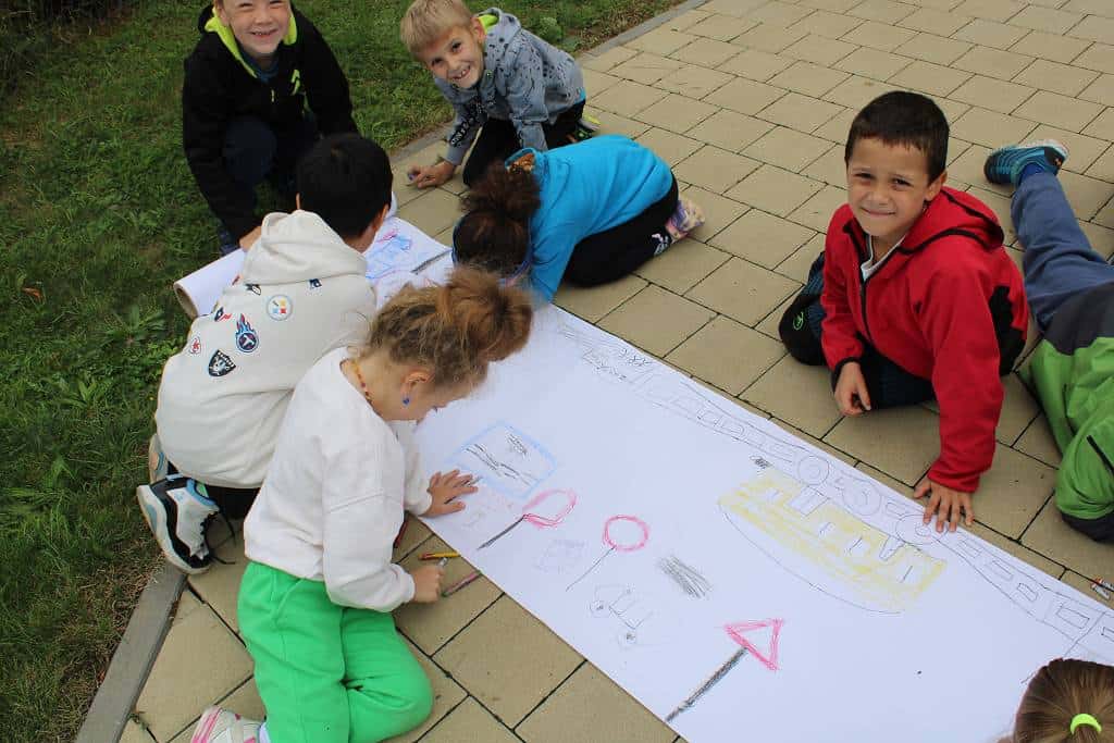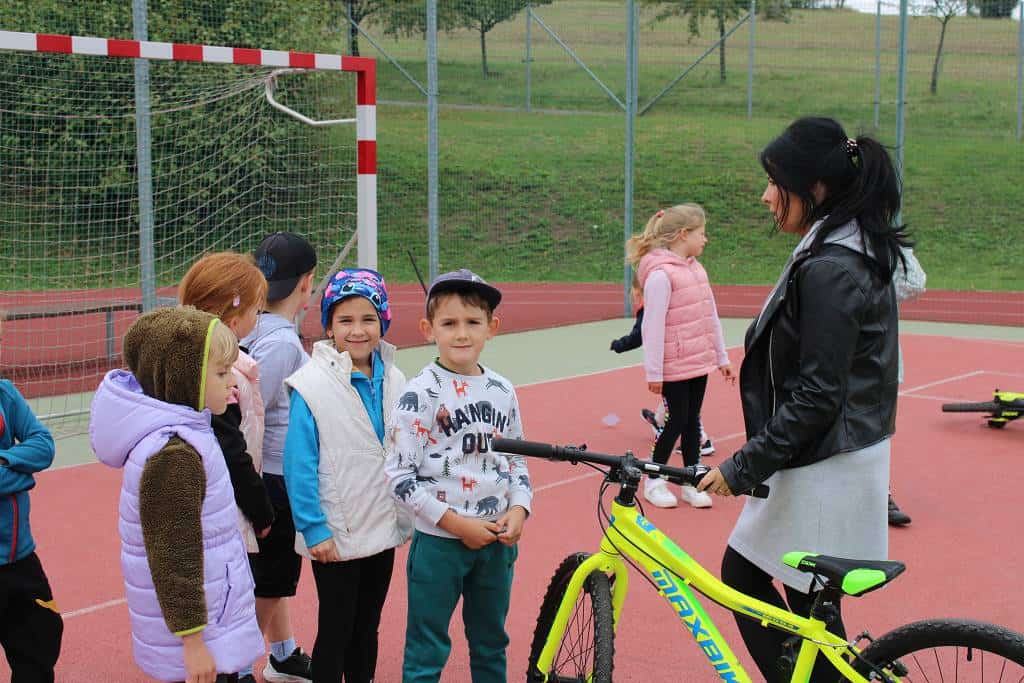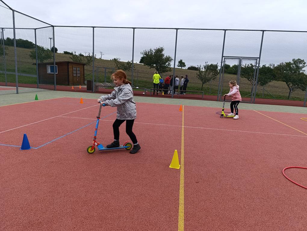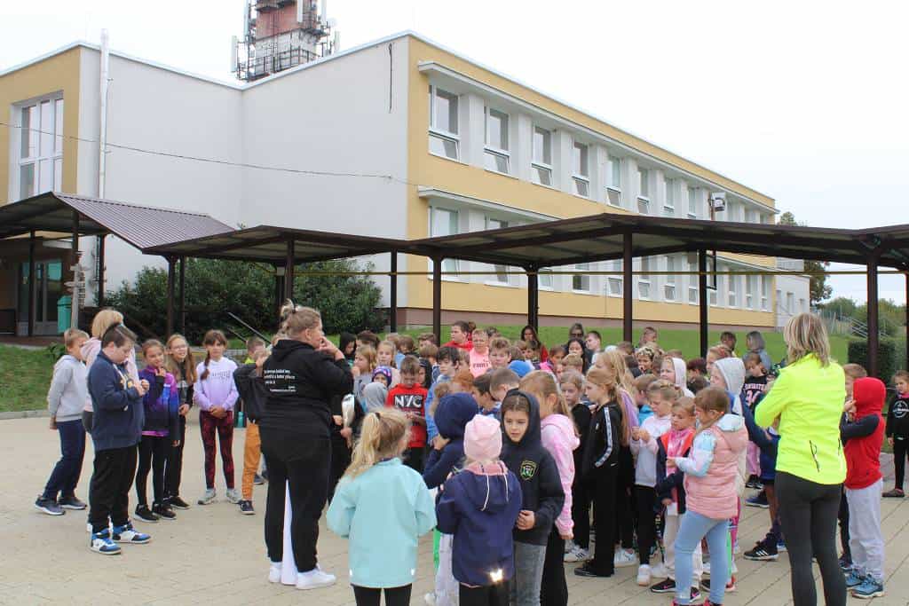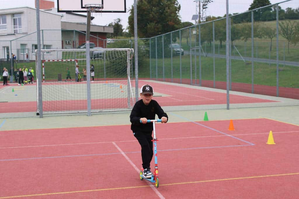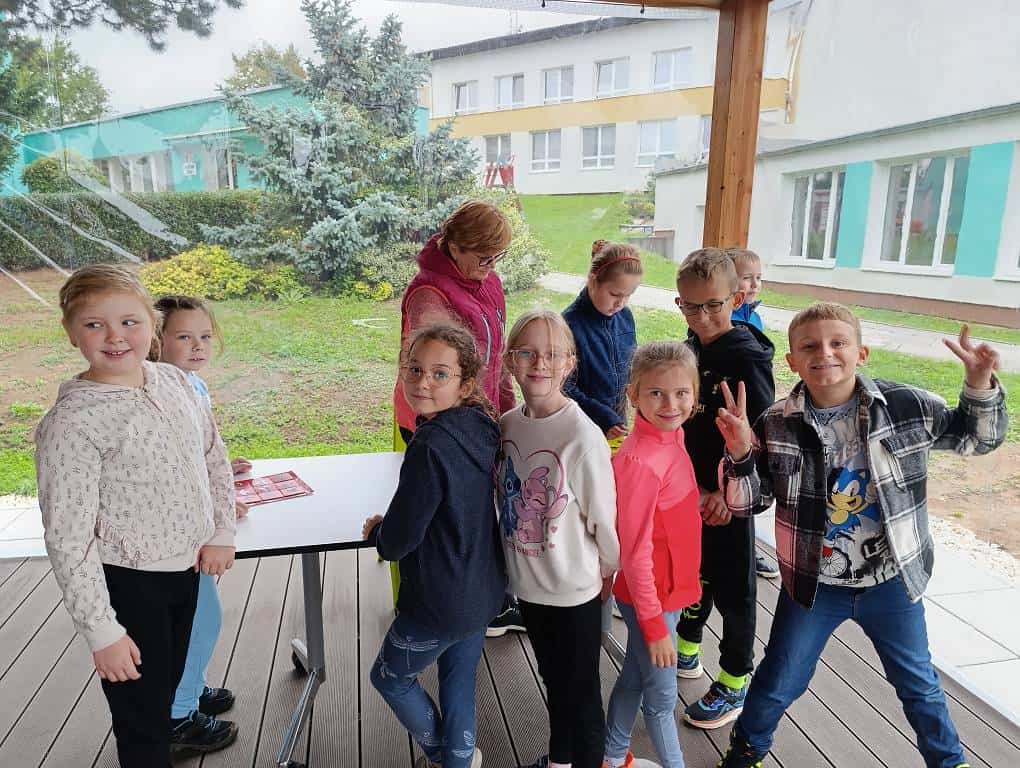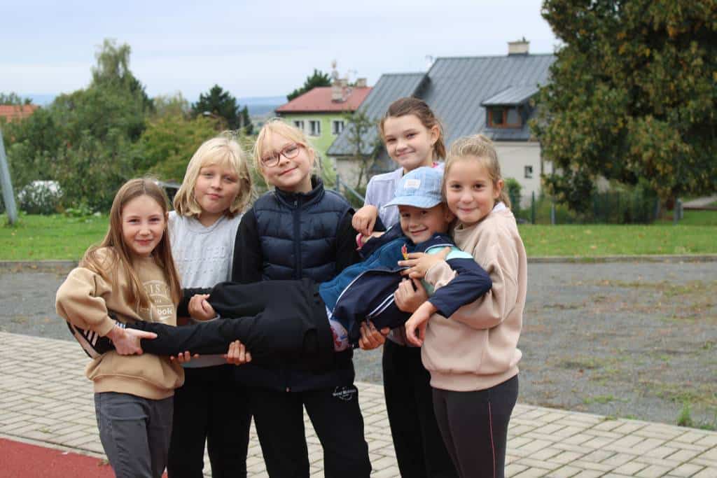 Ve čtvrtek 18.9. 2025 si žáci prvního stupně užili projektové dopoledne. Bylo to vyvrcholení celého týdne, kdy v rámci projektu „Pěšky do školy“ vyměnili pohodlí aut rodičů za vlastní pohon a chodili do školy pěšky, na kole, či koloběžkách. V rámci projektového dopoledne se poprali s úkoly, které pro ně byly připravené, a vyzkoušeli si tak bezpečnou jízdu na kole, slalom na koloběžce, poznávali povinnou výbavu cyklisty, nebo se naučili první pomoc při drobných úrazech. Na závěr všichni pustili uzdu své kreativitě a vytvořili společné dílo, kdy na dlouhý papír kreslili cokoli, co je napadne, když řekneme slovo „doprava“. I když na závěr spadlo pár kapek deště, tak si všichni akci užili a snad se i přiučili něčemu novému.