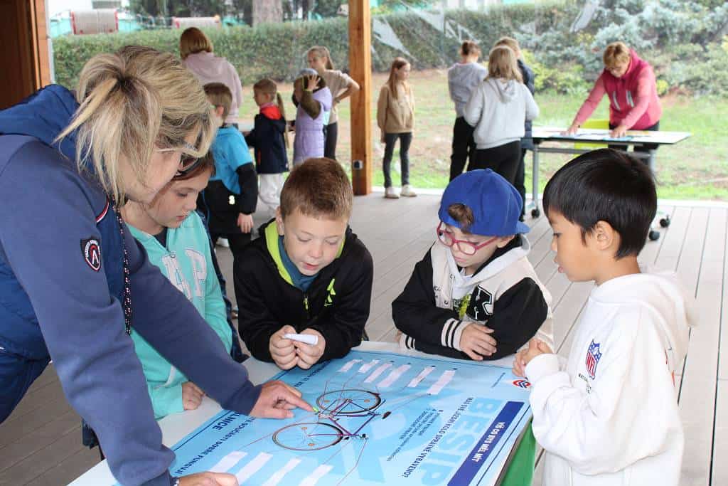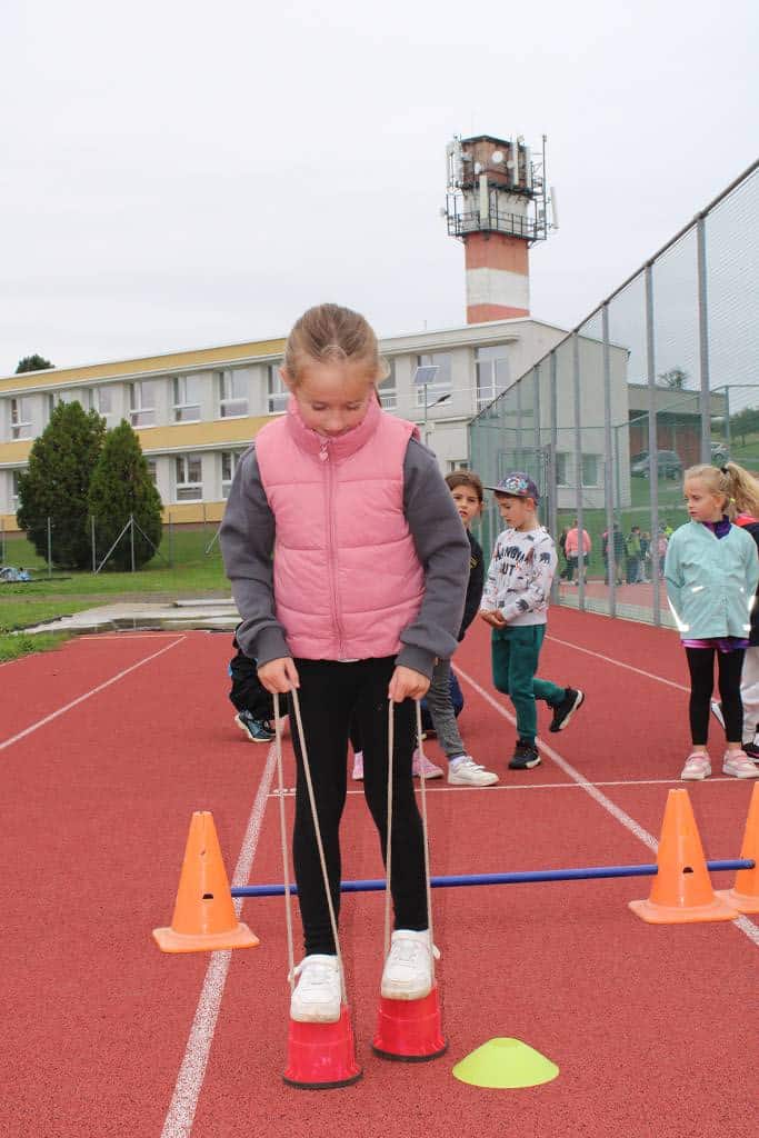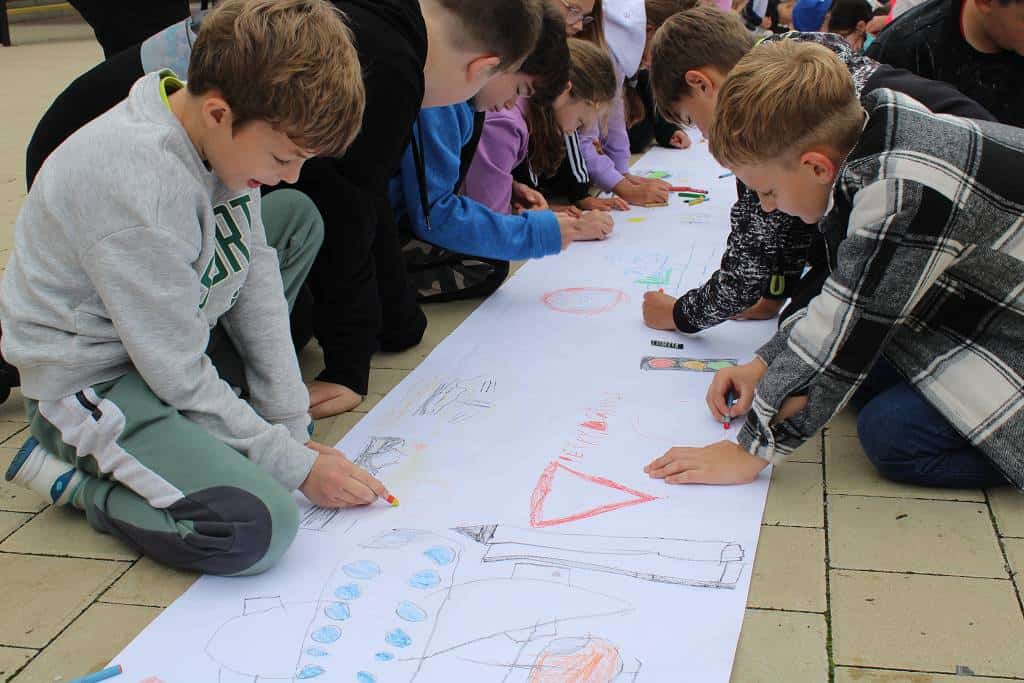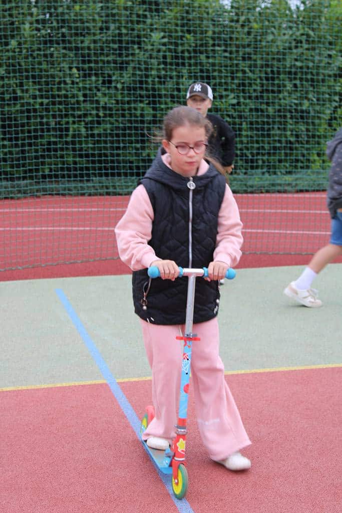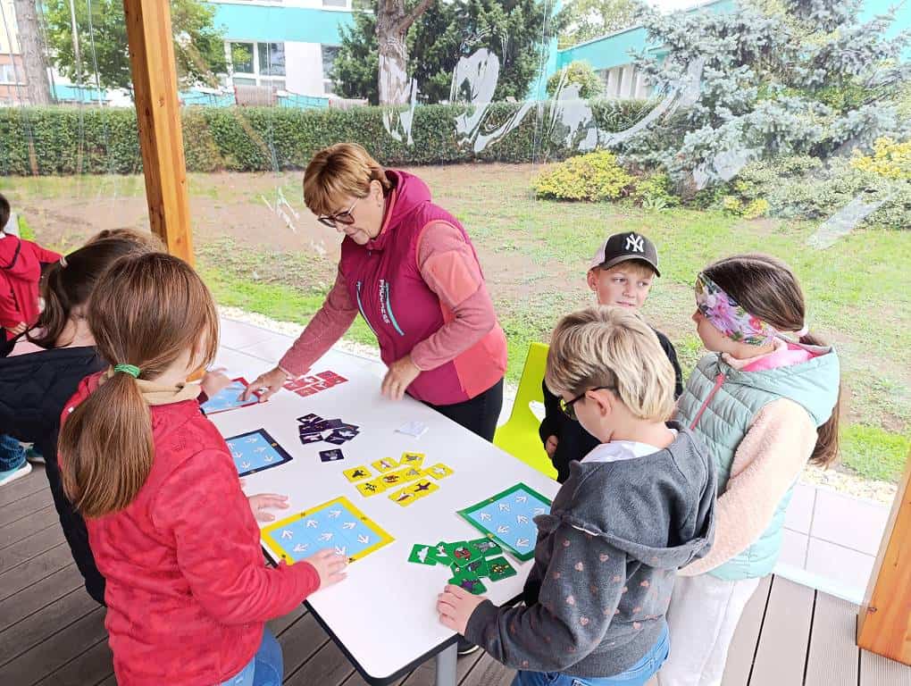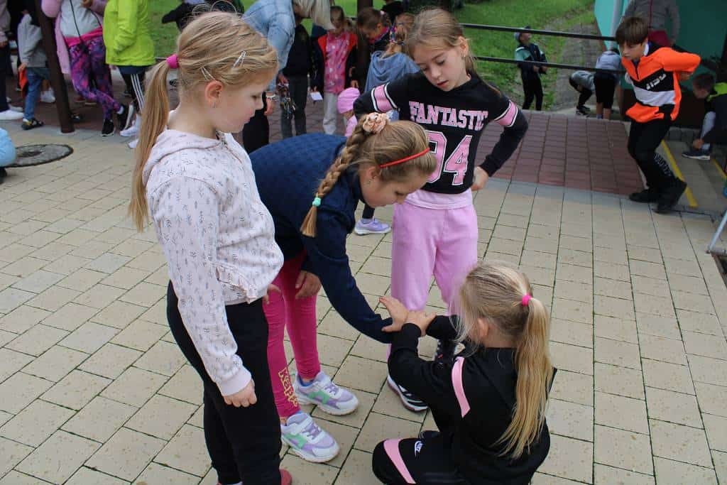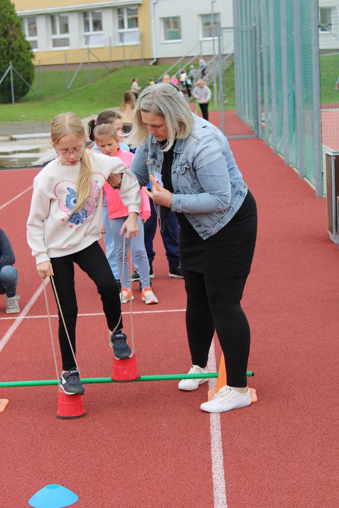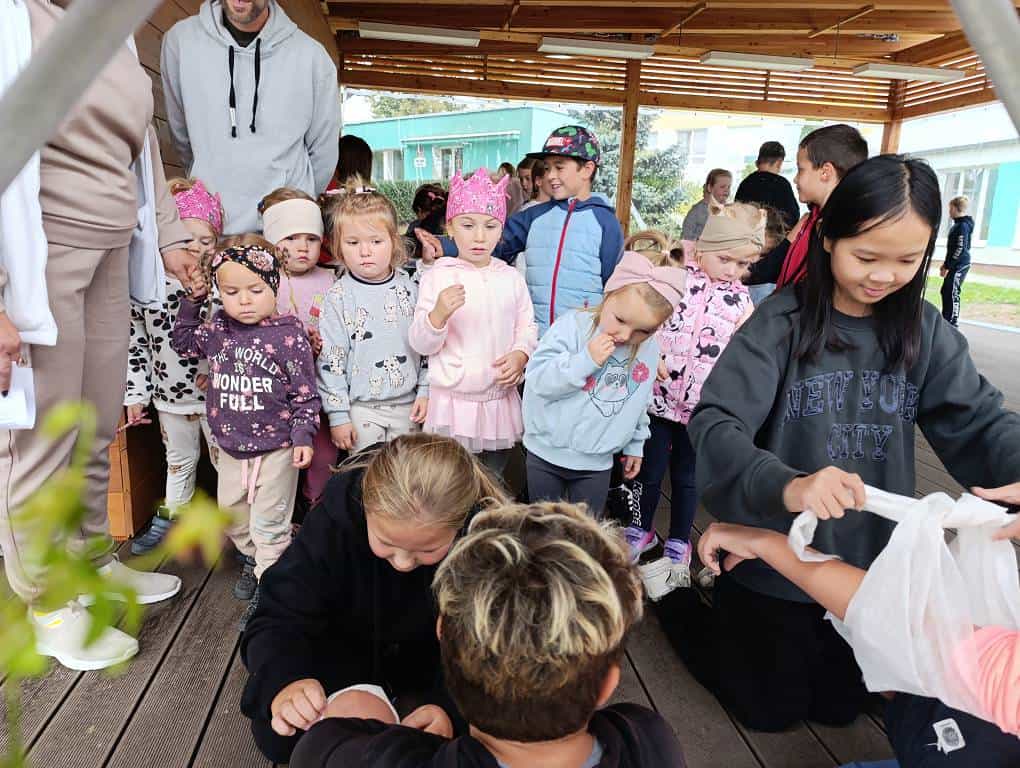 Ve čtvrtek 18.9. 2025 si žáci prvního stupně užili projektové dopoledne. Bylo to vyvrcholení celého týdne, kdy v rámci projektu „Pěšky do školy“ vyměnili pohodlí aut rodičů za vlastní pohon a chodili do školy pěšky, na kole, či koloběžkách. V rámci projektového dopoledne se poprali s úkoly, které pro ně byly připravené, a vyzkoušeli si tak bezpečnou jízdu na kole, slalom na koloběžce, poznávali povinnou výbavu cyklisty, nebo se naučili první pomoc při drobných úrazech. Na závěr všichni pustili uzdu své kreativitě a vytvořili společné dílo, kdy na dlouhý papír kreslili cokoli, co je napadne, když řekneme slovo „doprava“. I když na závěr spadlo pár kapek deště, tak si všichni akci užili a snad se i přiučili něčemu novému.