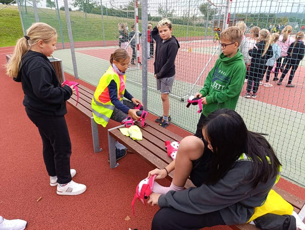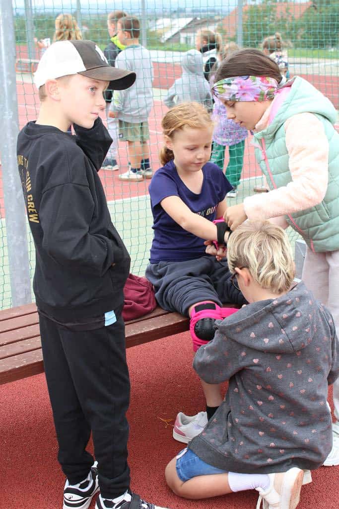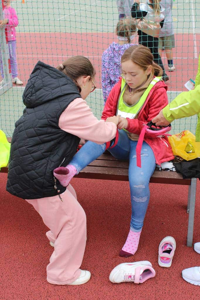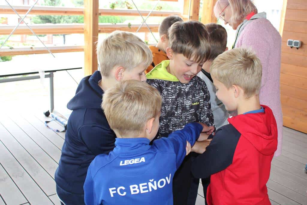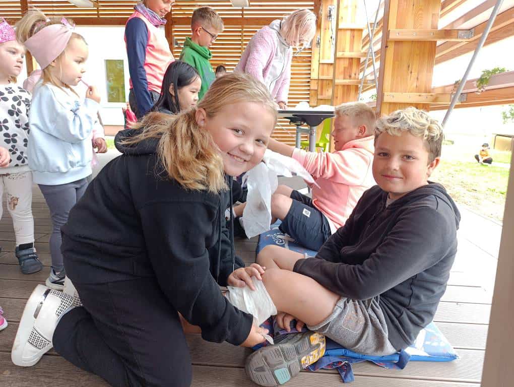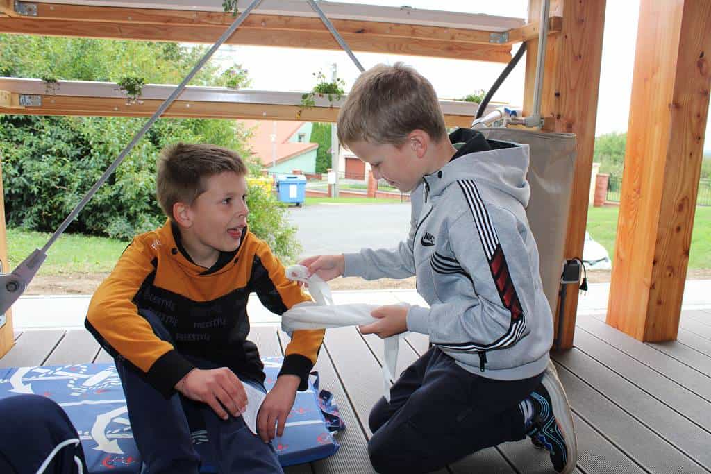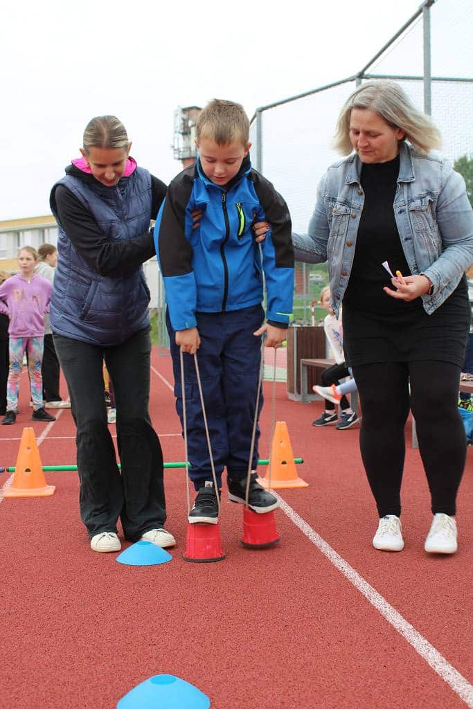 Ve čtvrtek 18.9. 2025 si žáci prvního stupně užili projektové dopoledne. Bylo to vyvrcholení celého týdne, kdy v rámci projektu „Pěšky do školy“ vyměnili pohodlí aut rodičů za vlastní pohon a chodili do školy pěšky, na kole, či koloběžkách. V rámci projektového dopoledne se poprali s úkoly, které pro ně byly připravené, a vyzkoušeli si tak bezpečnou jízdu na kole, slalom na koloběžce, poznávali povinnou výbavu cyklisty, nebo se naučili první pomoc při drobných úrazech. Na závěr všichni pustili uzdu své kreativitě a vytvořili společné dílo, kdy na dlouhý papír kreslili cokoli, co je napadne, když řekneme slovo „doprava“. I když na závěr spadlo pár kapek deště, tak si všichni akci užili a snad se i přiučili něčemu novému.
