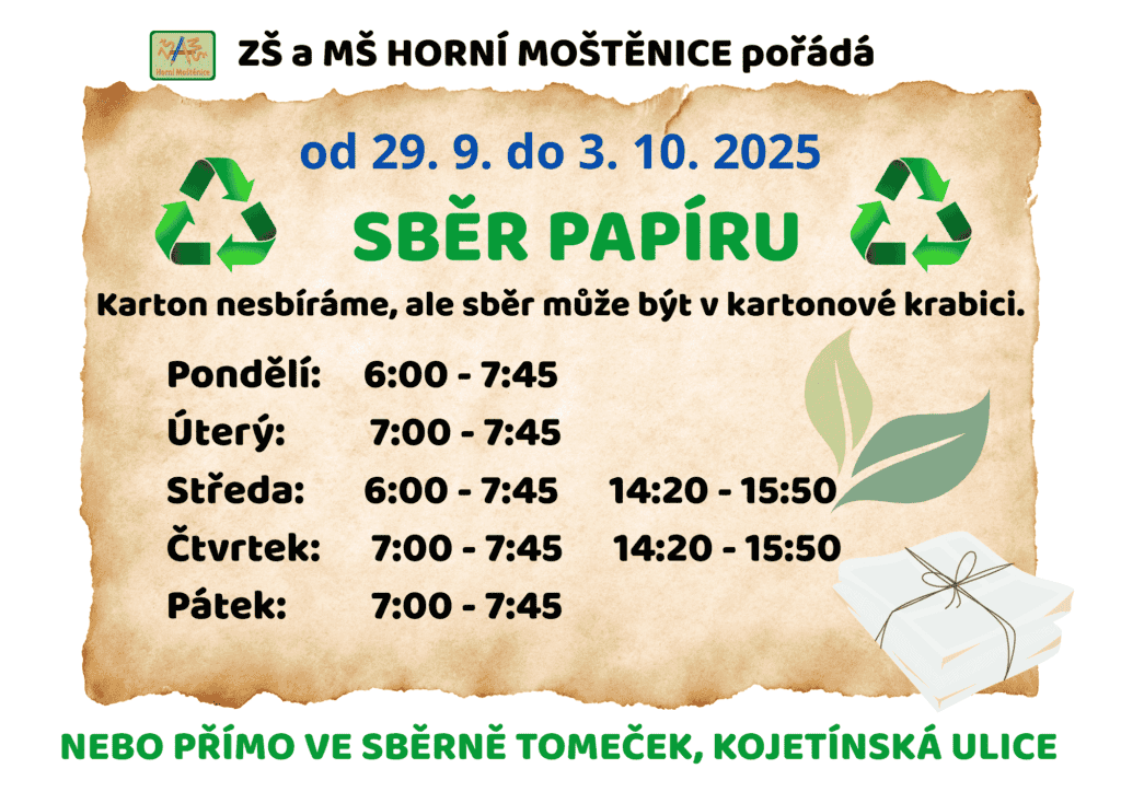 27 Září Sběr papíru MŠ, Aktuality Author Vlasta Krejčířová Komentáře nejsou povolené u textu s názvem Sběr papíru